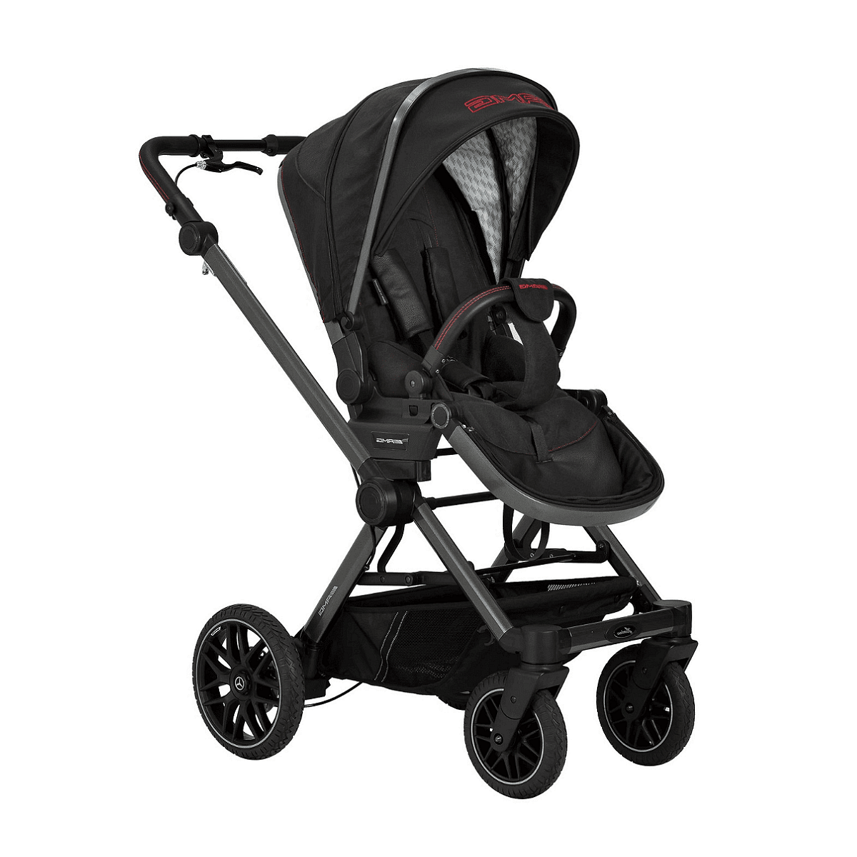 Изключителните дизайни се допълват от елегантно оцветеното шаси с шарката на Mercedes-Benz и системата за колани с магнитно заключване, която е детска игра за работа и удобна за регулиране.