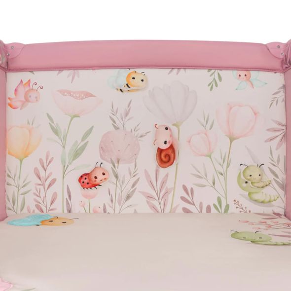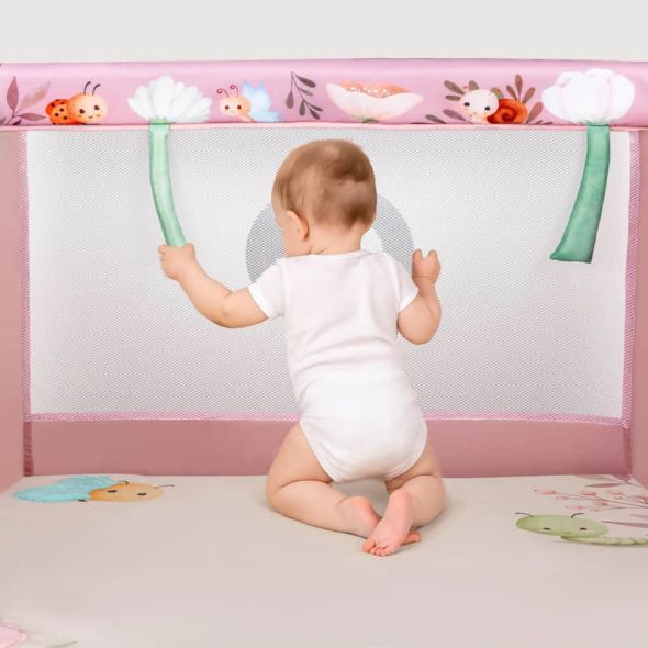 Това е истински център за развитие на вашето мъниче — още от първия ден! Цветните принтове и играчките, които се прикрепят с велкро, гарантират, че времето, прекарано в кошарата, ще бъде чисто удоволствие за детето! Благодарение на специалните дръжки, тя подпомага детето при първите му опити да се изправя, а красивите цветове и уникалните шарки радват окото.