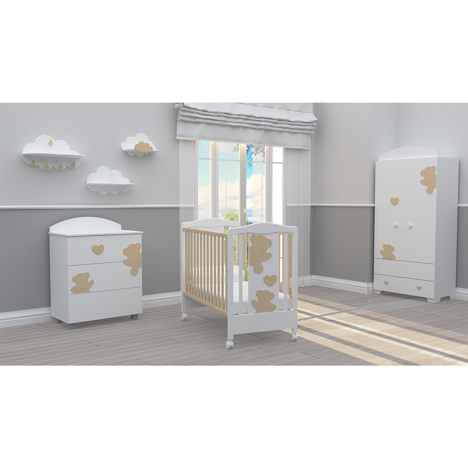 BAMBINO CASA Комплект 3ч. бебешко легло + скрин + гардероб с пуш механизми Amore naturale