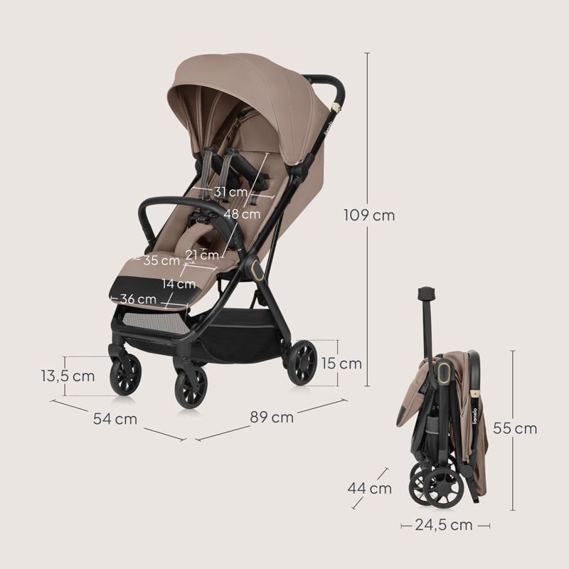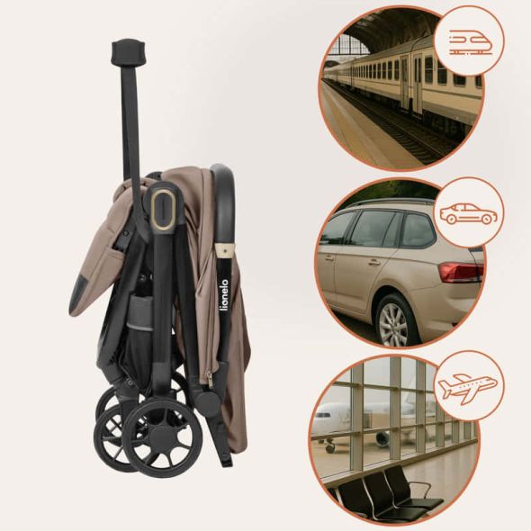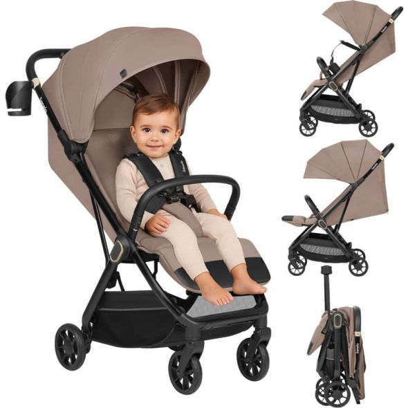 Bess е създадена с мисъл за пътуването – независимо дали става дума за ежедневни разходки или дълги приключения. С тегло само 7.5 кг, количката се сгъва до компактен размер, който лесно се побира в ръчния багаж. Благодарение на включената презрамка, можете просто да я преметнете през рамо и да тръгнете – през летището, жп гарата или направо към автомобила.