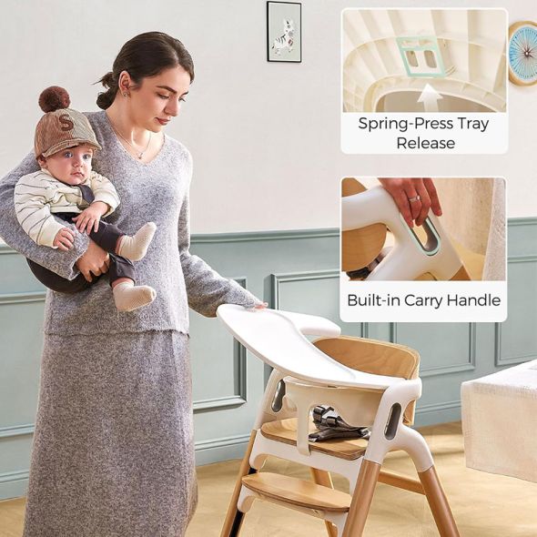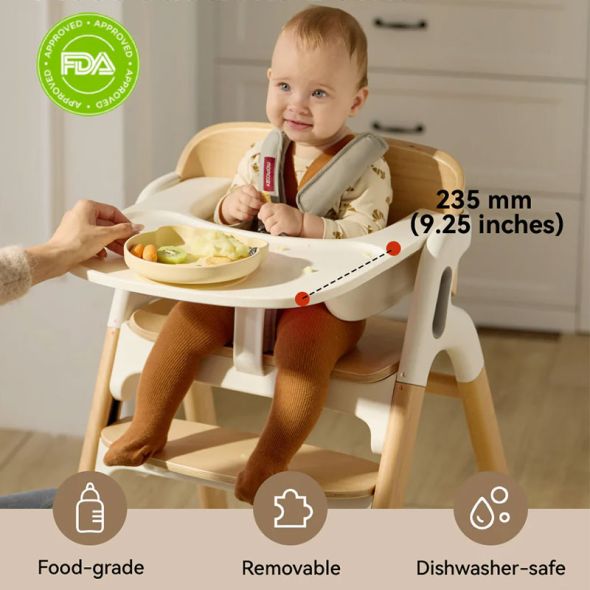С впечатляваща товароносимост до 140 кг и регулируема седалка, този 5 в 1 стол за хранене осигурява постоянен комфорт на вашето дете, като се адаптира безпроблемно от бебе до зряла възраст.