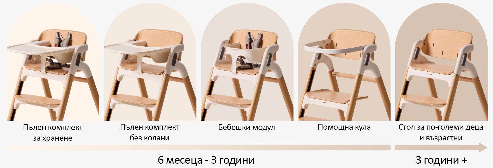 Леко извитата облегалка подпомага естественото изправено положение на гръбначния стълб по време на хранене.