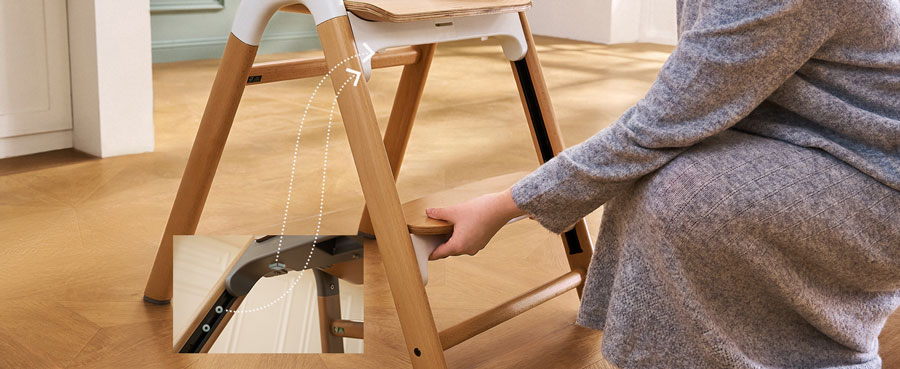 С помощта на включения инструмент столът лесно се трансформира в помощна кула. Тази функция ви позволява да насърчите детето да изследва и учи нови неща – например да избира книга от рафта или да участва в приготвянето на храна на кухненския плот.