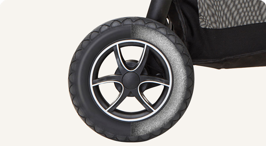 Устойчиви на спукване гуми, пълни с пяна, които преминават през всяка неравност на пътя.