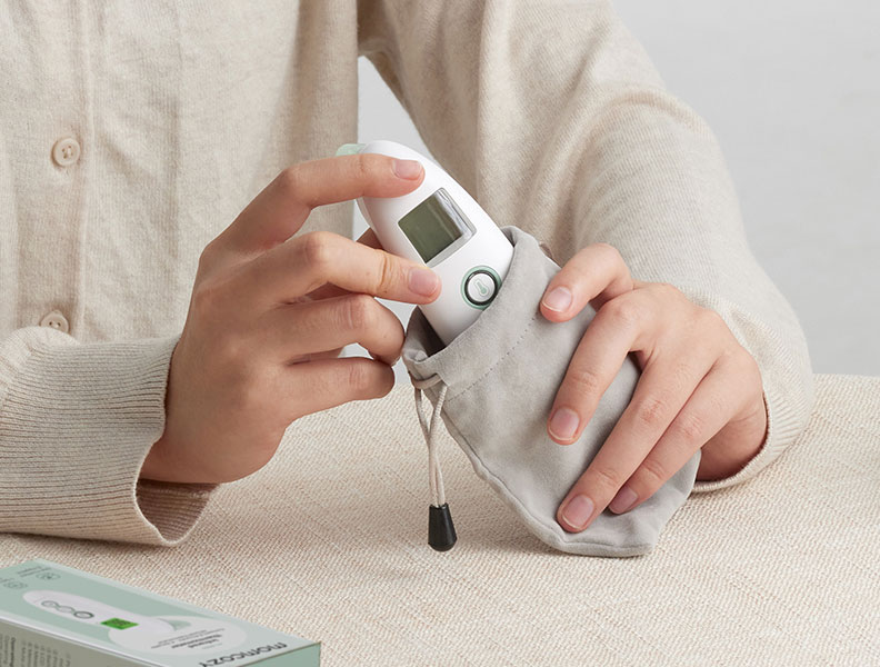 Термометърът Momcozy е компактен и лек, което го прави удобен за носене навсякъде. Включена е чанта за съхранение за по-лесно пренасяне, така че да можете да измервате температурата по всяко време. Инфрачервеният термометър за чело се доставя с батерии, осигуряващи дълъг живот и продължителна употреба.