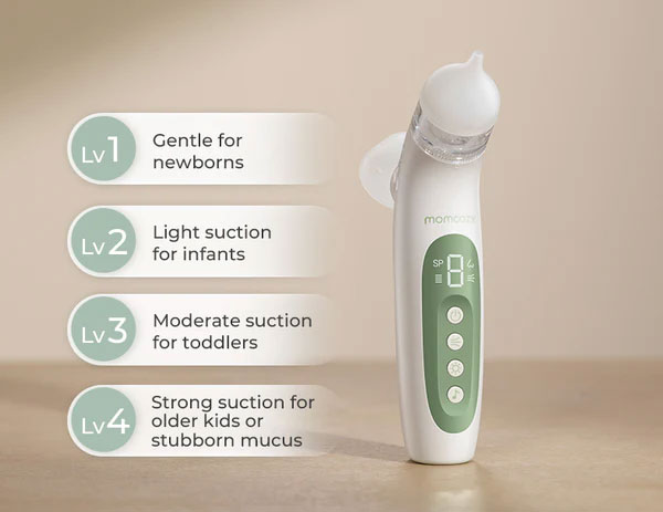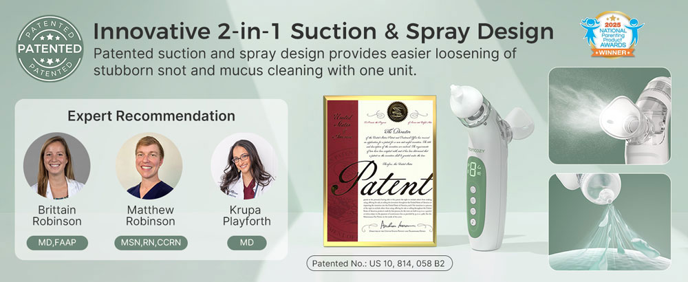 Комбинирайки прецизно прилягаща назална маска с фин спрей, електрическият назален аспиратор 2-в-1 Momcozy бързо омекотява упоритите секрети и улеснява тяхното отстраняване. В комбинация с мощно засмукване до 65 kPa (на ниво болничен стандарт), той нежно и ефективно почиства носа и възстановява свободното дишане за секунди.